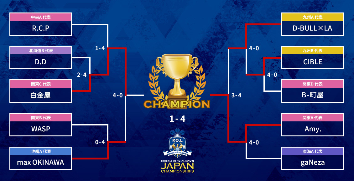 出場者の喜怒哀楽が渦巻く予選ロビン~決勝トーナメントの激闘を制し、「JAPAN CHAMPIONSHIPS」の頂点に立ったチームは「関東代表 Amy.」に決定しました。